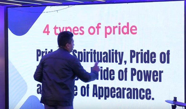 He also spoke about the types of pride—pride of spirituality , pride of knowledge, pride of power, and pride of appearance —and warned against them with Proverbs 16:18.